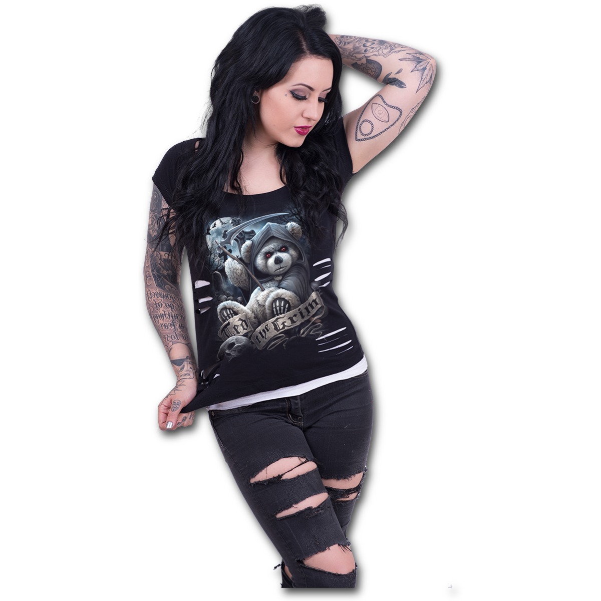 Dámské tričko s velmi profesionálním potiskem firmy Spiral Direct. Textilie je velmi stálá a nedeformuje se i po několika desítkách praní. Totéž platí pro aplikaci potiskem, která vyniká dlouhou životností a stálostí barev. Dvojité prošití lemu a švů zaručuje velmi příjemné nošení s minimálním opotřebením výrobku.