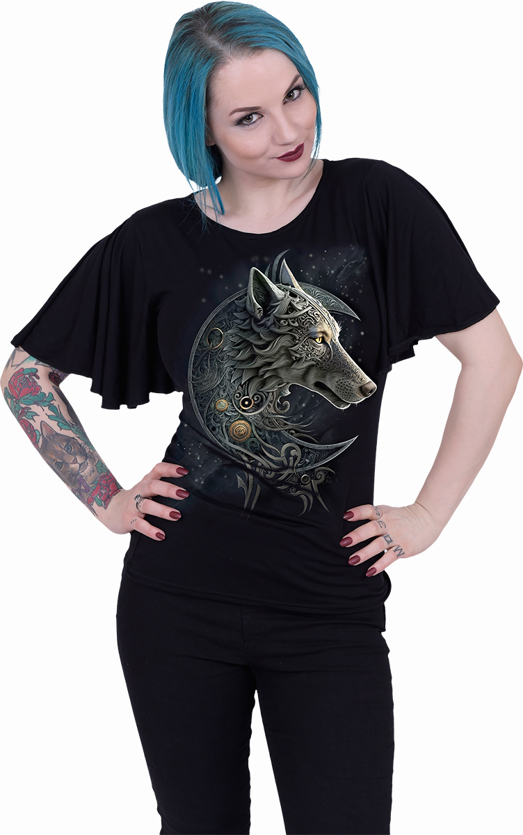 Dámské tričko s velmi profesionálním potiskem firmy Spiral Direct, která již přes třicet let zabývá potiskem merche s motivy, jako jsou lebky, draci, vlci, kočky, motorky, vikingové, metalové kapely, filmy.