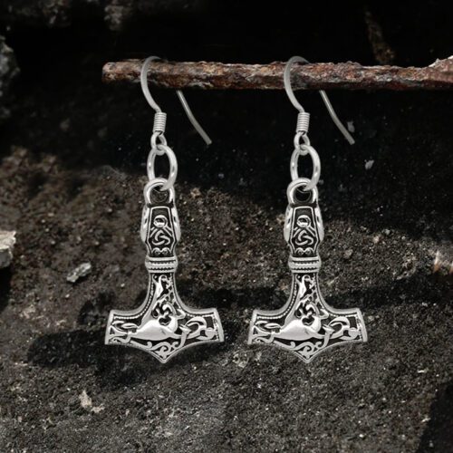 Náušnice chirurgická ocel VIKING Odin Mjolnir – 1 pár
